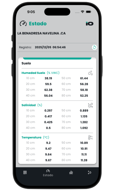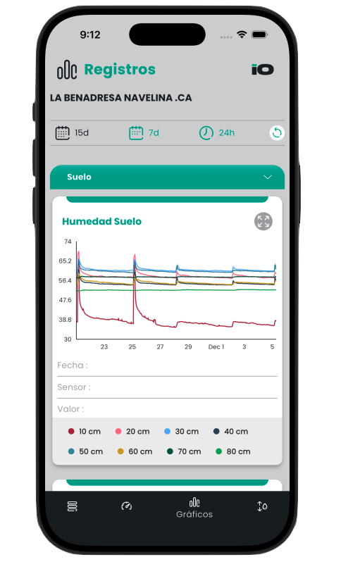 Sin necesidad de conectarte a través del navegador web. iOLANDapp es la forma más sencilla de poder visualizar los datos de tus estaciones y poder tomar decisiones sobre tu campo.